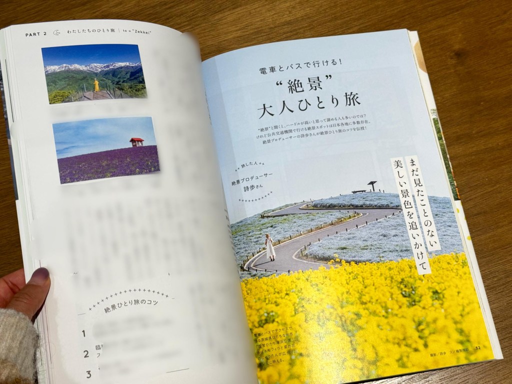 ひとり旅におすすめの絶景スポットや、旅の持ち物、スケジュール管理のコツ、写真撮影の方法など、たっぷり掲載いただきました!