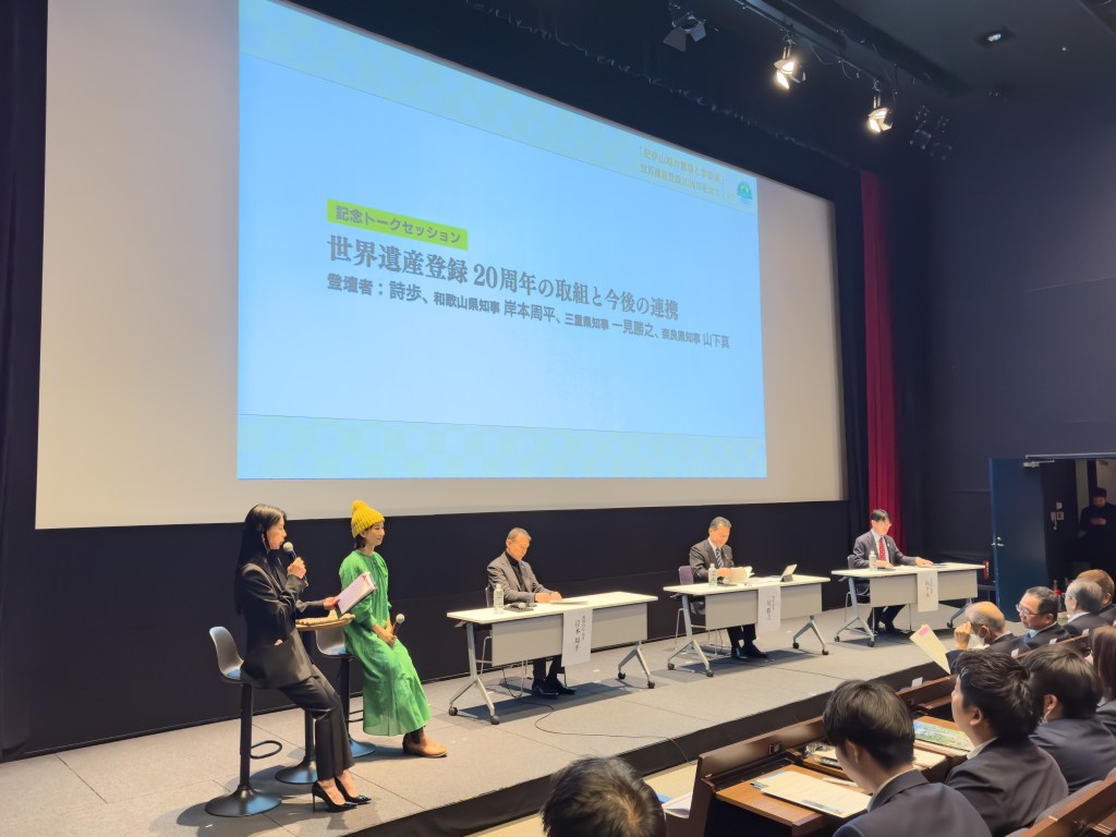 その後、和歌山県知事、三重県知事、奈良県知事の御三方とともに『世界遺産登録20周年の取組と今後の連携』をテーマにトークセッションをさせていただきました。