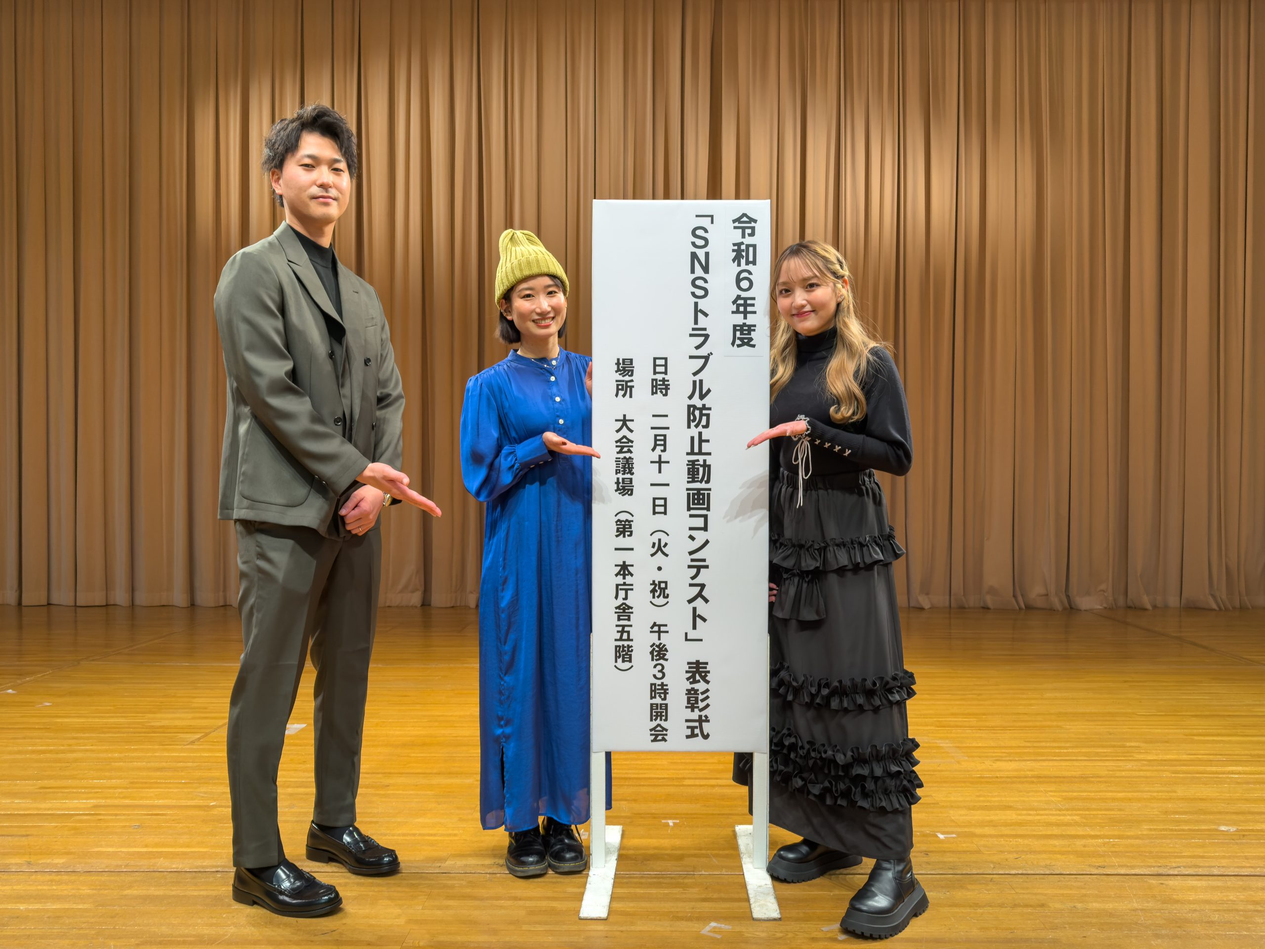 写真は同じく審査員を務めた、タレントのねおさん、動画クリエイターのにじじゅんさんと。