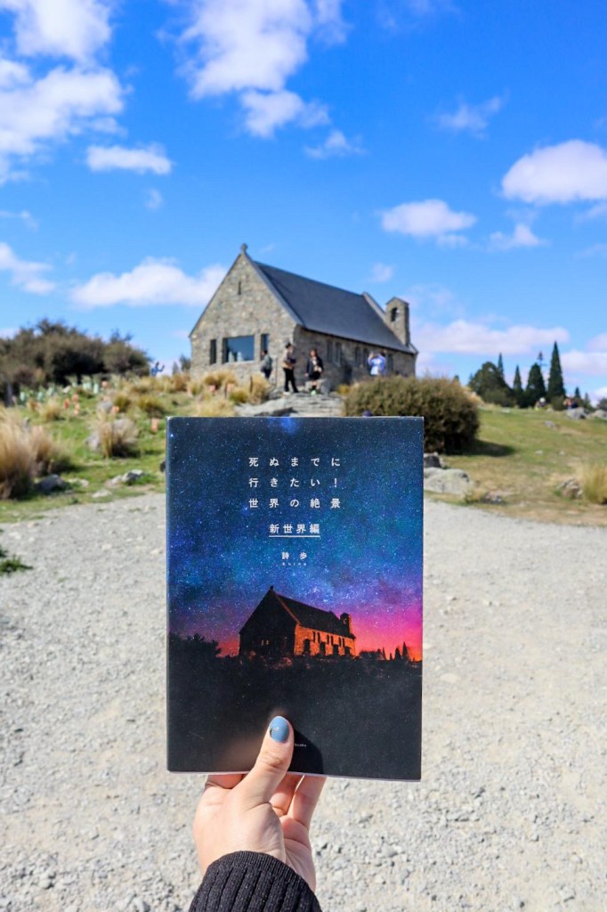 新刊 「死ぬまでに行きたい!世界の絶景 新世界編」を、表紙と同じ場所であるニュージーランドのテカポで撮影してくれたもの。