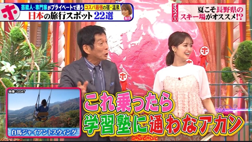 2025-07-31 Home › NEWS/お知らせ TV/テレビ › 【テレビ】フジテレビ系「ホンマでっか!?TV」出演しました 【テレビ】フジテレビ系「ホンマでっか!?TV」出演しました 7月23日に、フジテレビ系列「ホンマでっか!?TV」に出演しました! ”絶景評論家”として、「夏こそ長野県のスキー場へ」「感動日本一の花火大会」など、解説させていただきました。 ご覧いただいた皆さん、感想を送ってくださった皆さん、ありがとうございました! 関連記事 9/22(日)13:55〜長野朝日放送のTV番組「#おおまち女子旅」に出演しています 【テレビ】9月17日「スクール革命!」出演します 【テレビ】7/16(土)カンテレ「かまいたちの机上の空論城」出演します TBS「王様のブランチ」で「新日本編」が週間売上2位として紹介されました! 「死ぬまでに行きたい!世界の絶景 日本編」がオリコン3位としてめざましテレビで紹介されました☆ 【テレビ】7月23日「ホンマでっか!?TV」に出演します
