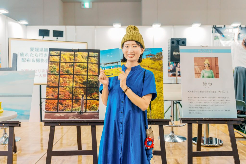 今回特別に制作した観光冊子「疲れたら、行きたい!愛媛の絶景」の特別配布&写真撮影会を行いました!