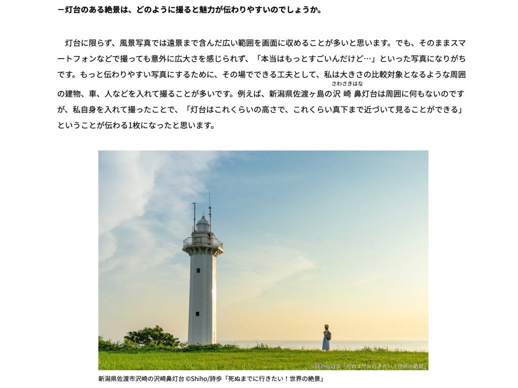 【前編】海、星、太陽。さまざまに映える「灯台」の魅力 https://www.magazine.mlit.go.jp/interview/vol58-a-1