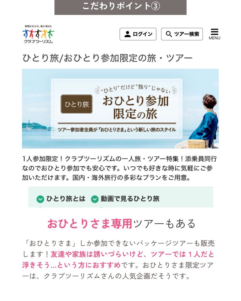 ③ おひとりさま専用ツアーもある