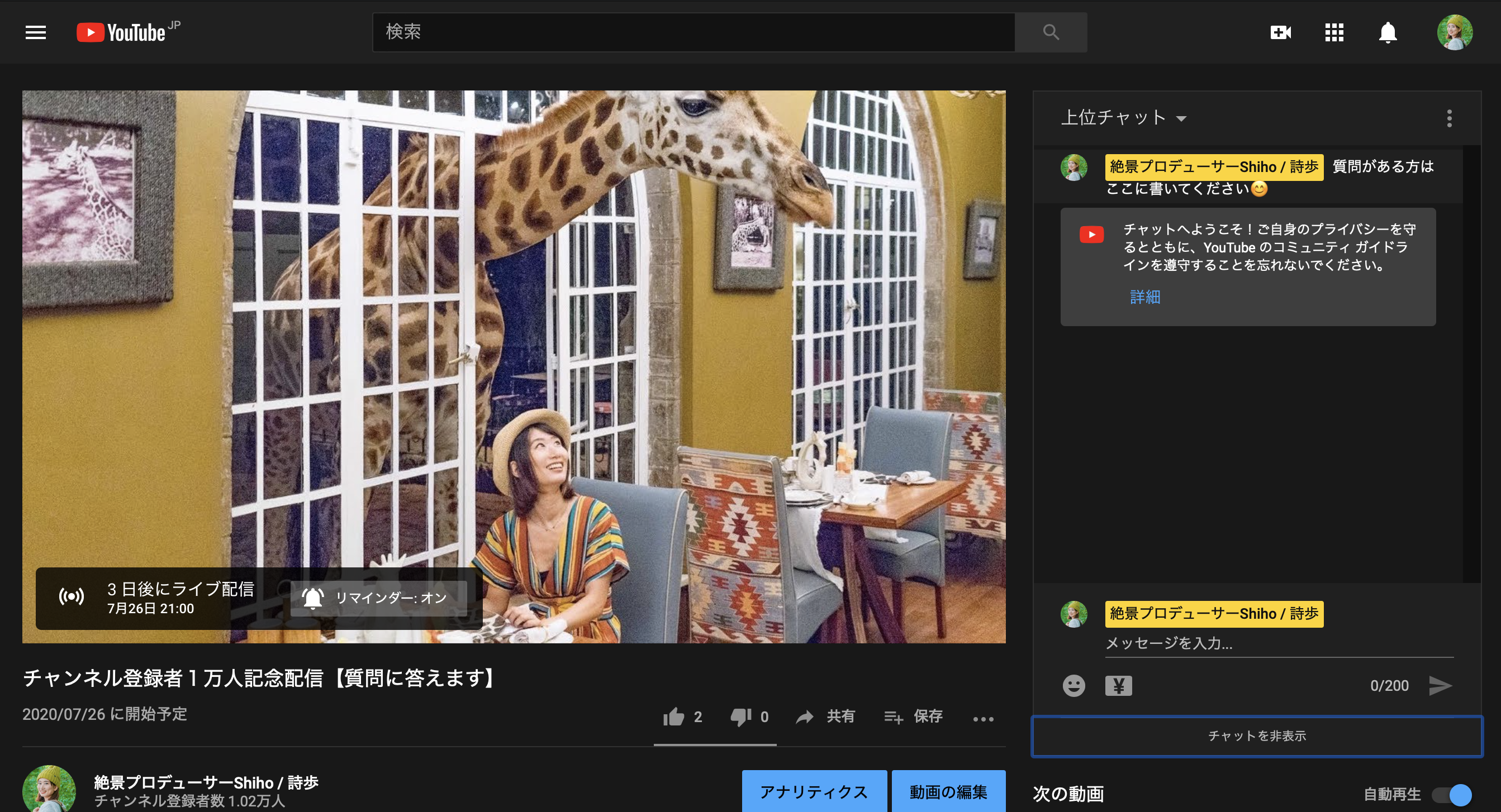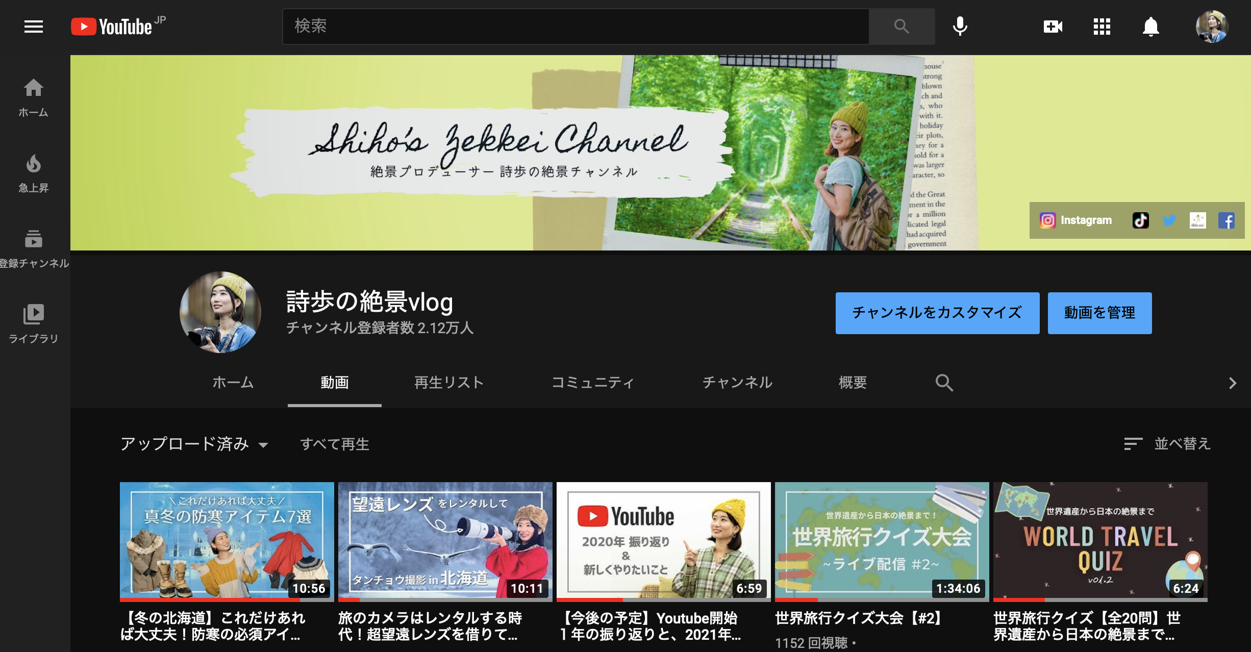 運営しているYoutubeチャンネルの登録者数が【2万人】を超えました! 詩歩の絶景vlog -Shiho’s vlo...