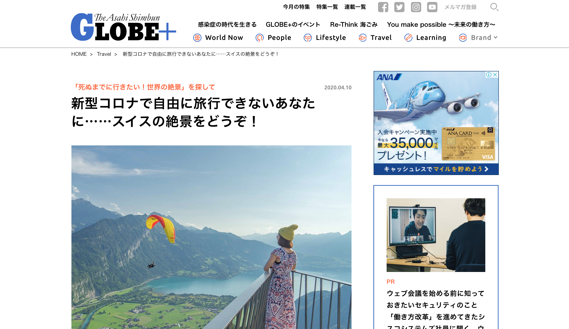 毎月連載している、朝日新聞GLOBEの記事が公開されました! テーマは『新型コロナで自由に旅行できないあなたに……スイスの絶景をど...