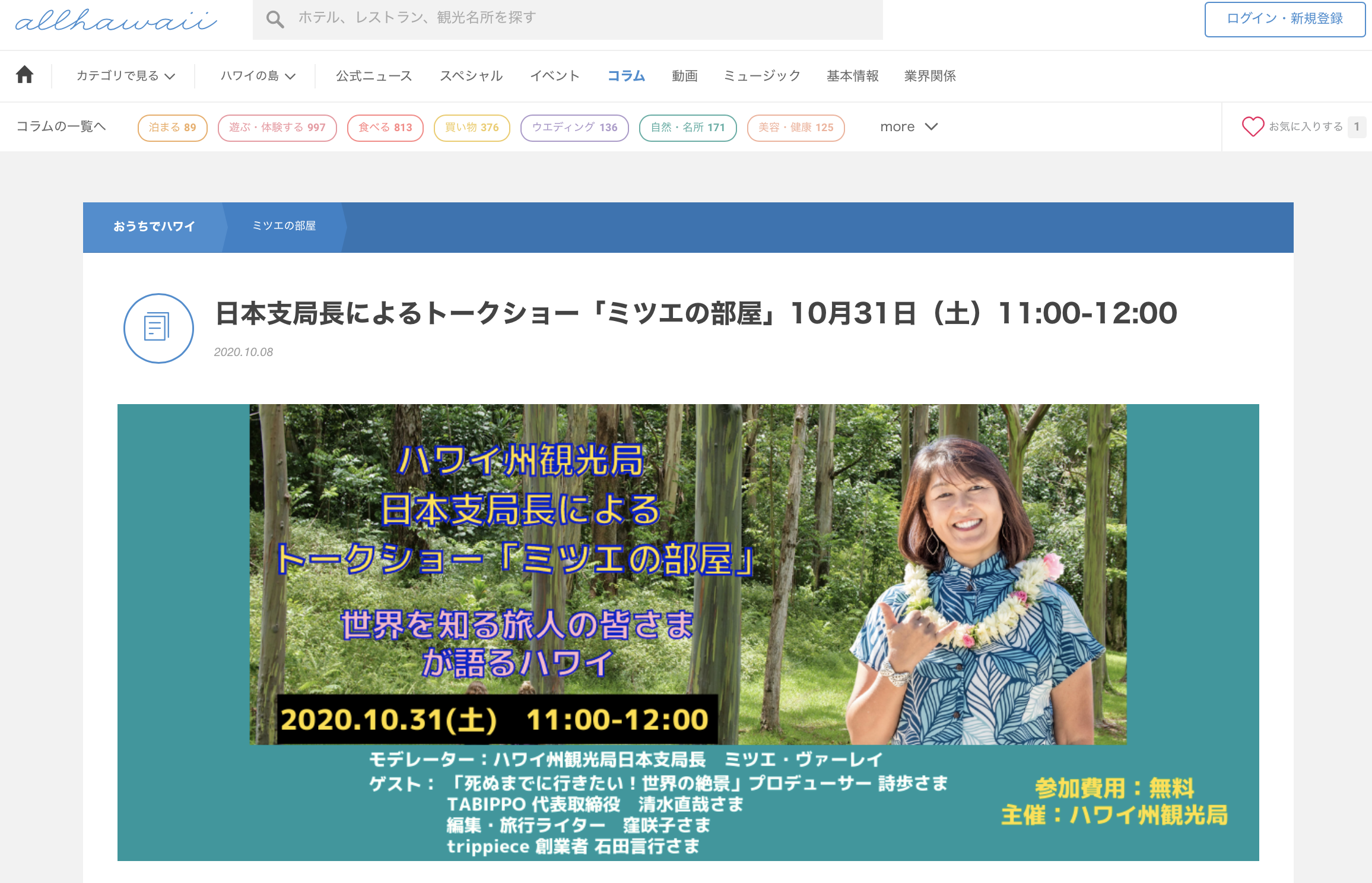 10/31(土)11時〜ハワイ州観光局さんが主催するオンラインイベント「ミツエの部屋」に登壇します! ミツエさんはハワイ州観光局の...